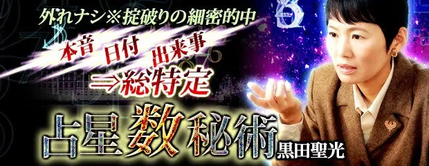 黒田聖光先生は、幼少の頃から占いや人々の人生の違いに興味を持ち、20代で東西の占いや運命学の研究を始めました。知人を鑑定する中でその的中率が評判となり、専業の占い師として活躍するようになりました。運命学だけでなく、心理学、霊的哲学、魔術、ヒーリングなど幅広い知識を学び、依頼者の幸せのために日々鑑定を行っています。