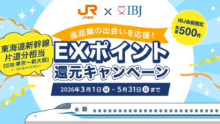 詳細: IBJまたはIBJ加盟店の結婚相談所のお見合い等に参加するため、EXサービスで東海道新幹線を往復で利用する等の条件を満たした場合、新幹線普通車(指定席・自由席)の片道利用代金(行きの乗車分)相当の「EXポイント(限定)」が、申請日の翌月末までを目途に還元されます。