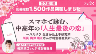 中高年向け恋活・婚活マッチングアプリ「ラス恋」が開催する「第一回ラス恋川柳コンテスト」が、募集開始からわずか4週間で応募総数1,500作品を突破しました!さらに、「ハルメク 生きかた上手研究所」所長の梅津順江さんが特別審査員に就任し、バレンタイン直前の2月13日(金)に優秀作品が発表されます。まだ作品募集中なので、あなたの「ラス恋」への想いを川柳にしてみませんか?